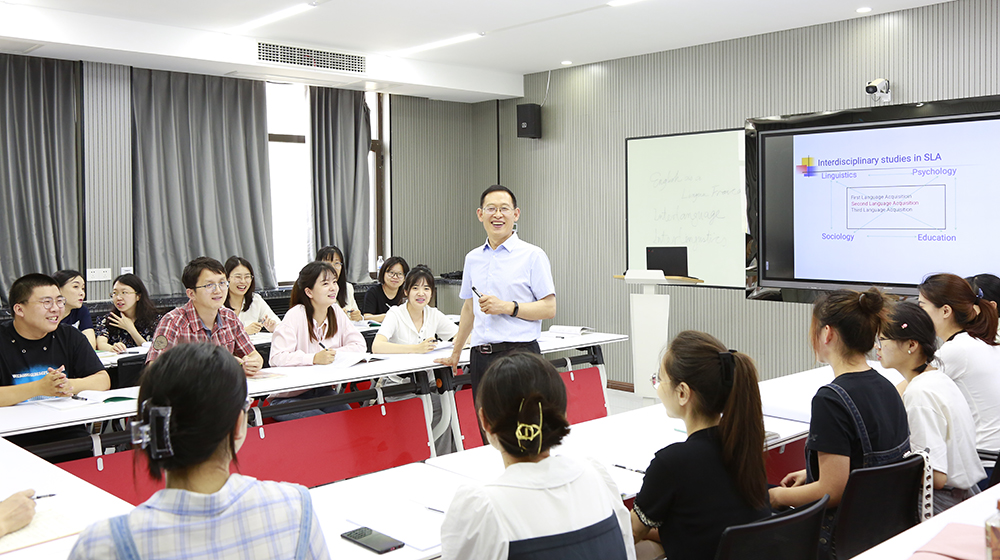 我們聘請了9位國際名師,其中5位是全球排名前2%的語言學家,與本院教師合作招收博士研究生,形成學術團隊,緊貼國際學術前沿。在學科建設上,我們主動對接國家戰略和社會需求,踐行外語學科的思想性、工具性、人文性和科學性,構建并實施了學科與國家戰略協同、團隊與國際師資協同、課題與優質課程協同、成果與社會需求協同、過程與培養結果協同的“五協同”高水平創新型外語學科人才培養模式,全面提升人才培養質量。