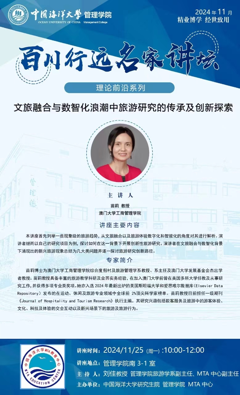 研究生百川講壇第398講-苗莉:文旅融合與數智化浪潮中旅游研究的傳承及創新探索