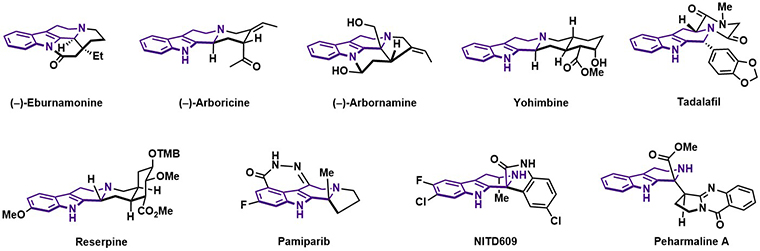 本站訊近日,中國海洋大學醫(yī)藥學院、海洋藥物教育部重點實驗室、青島海洋科技中心海洋藥物與生物制品功能實驗室王楊課題組在四氫-β-咔啉不對稱催化合成及其在海洋天然產(chǎn)物全合成的應用領域取得重要進展,相關成果以“Catalytic enantioselective nitrone cycloadditions enabling collective syntheses of indole alkaloids”(硝酮參與的對映選擇性環(huán)化反應用于吲哚生物堿的集群式合成)為題在線發(fā)表于國際知名學術期刊Nature Communications(《自然·通訊》)。四氫-β-咔啉 (Tetrahydro-β-carboline, THβC) 是一類重要的含氮雜環(huán)化合物,廣泛存在于天然產(chǎn)物和藥物分子中,如利血平 (Reserpine)、育亨賓 (Yohimbine)和他達拉非(Tadalafil)等 (圖1)。3,4-二氫-β-咔啉氧化物作為一類含有咔啉結構的硝酮化合物,在合成手性四氫-β-咔啉衍生物方面具有很大潛力,然而3,4-二氫-β-咔啉氧化物參與的不對稱催化反應仍鮮見報道。圖1. 含四氫-β-咔啉